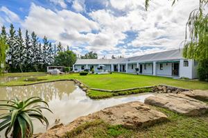 To truly grasp the full potential and tranquility of this property, a personal visit is a must. Picture yourself strolling amidst the lush surroundings, serenaded by the melodies of birdlife, and admiring the elegant weeping willow trees framing the earth dam, with the main house and glistening pool as a captivating backdrop.