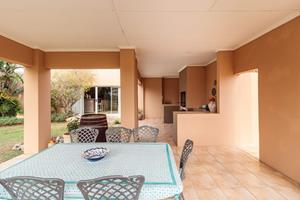 Sliding doors open to a large outdoor entertainment area-perfect for gatherings and relaxing in nature