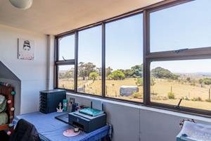 The first portion features a beautiful double storey home, spacious and inviting, with stunning views over the surrounding farmland and town. The house offers a comfortable lounge, dining room, kitchen and laundry. An entertainment area with a built-in braai makes it ideal for hosting family and friends. The home includes five bedrooms, two bathrooms (main en-suite), a guest toilet and a garage. Generous living spaces throughout create a sense of openess and comfort.