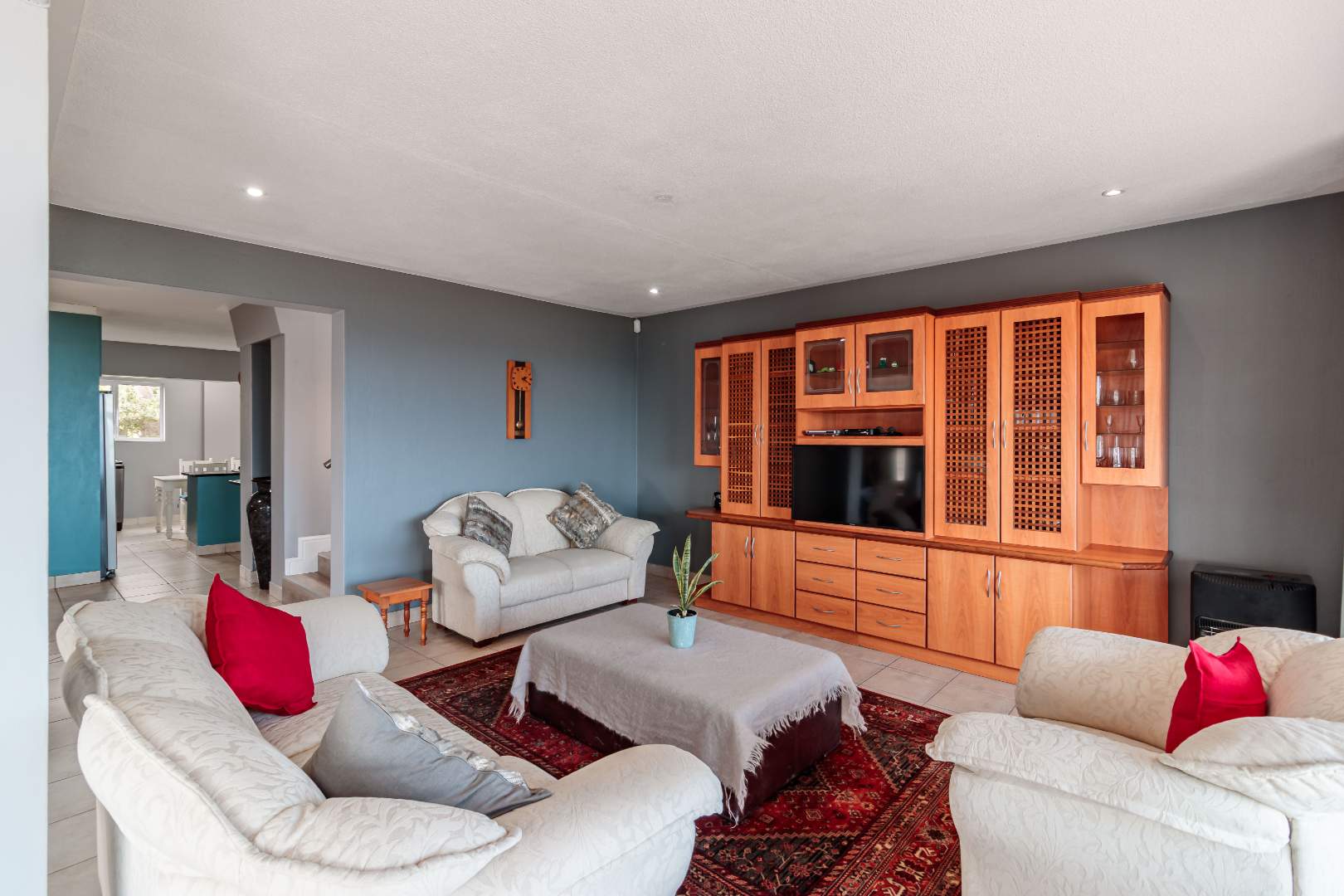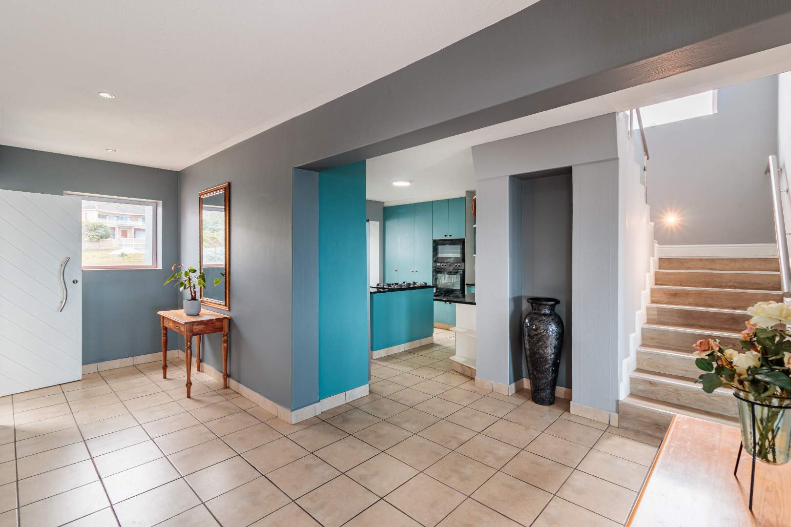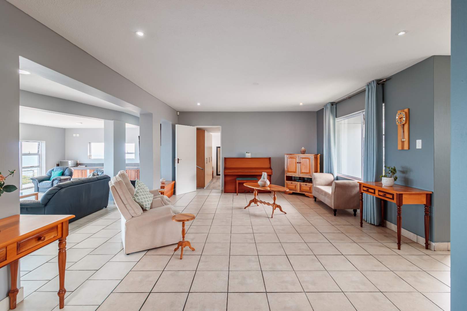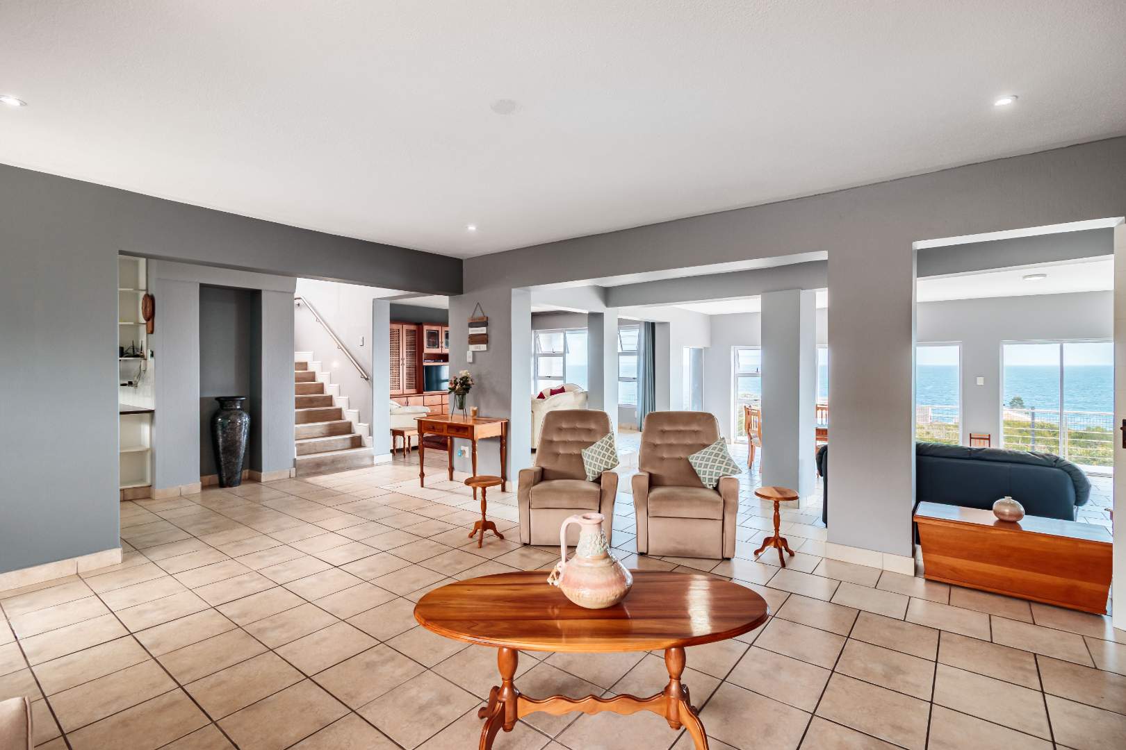 Upon entering, you’re welcomed into an expansive open-plan layout featuring four generous living areas — two inviting lounges, a dining area, and an indoor braai room — all designed to showcase the panoramic ocean views. Natural light and sea breezes fill the space, creating a warm and effortless flow ideal for entertaining or everyday family life.