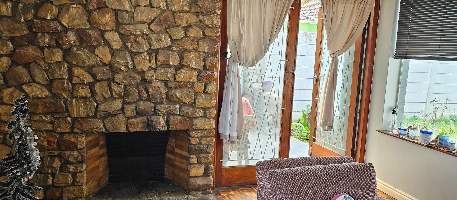 Inside, the home boasts stunning wooden floors that exude warmth and character, complemented by a cozy fireplace that enhances the inviting atmosphere. The living area seamlessly transitions to an outdoor braai and entertainment space, perfect for hosting gatherings and enjoying the natural surroundings.