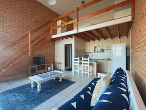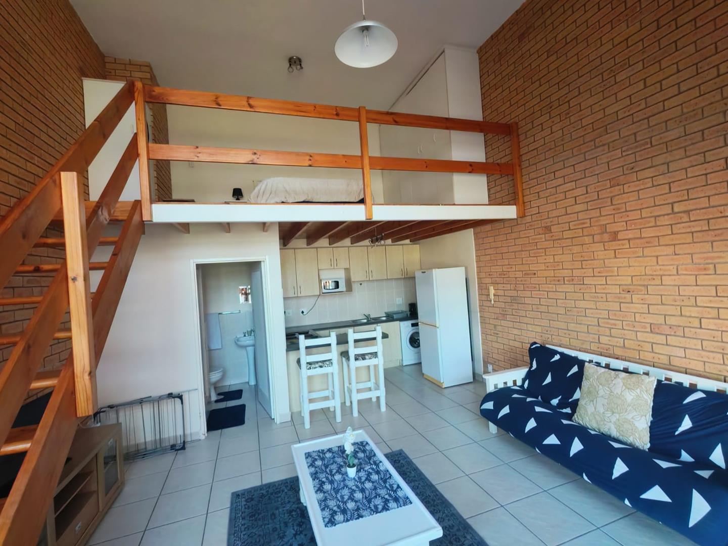 The apartment features an open-plan living area that flows into a modern kitchen, creating a light and welcoming space to relax or entertain. The loft bedroom upstairs provides a private retreat, making the layout both practical and charming.