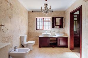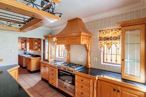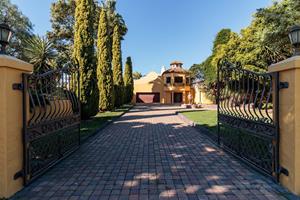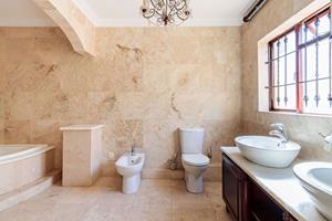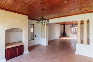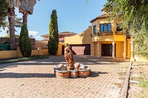 Step inside to find four expansive bedrooms, complemented by a separate Butler’s room and five luxurious bathrooms. Perfect for hosting or entertaining clients, this residence also features its very own cinema room, offering an extraordinary blend of comfort and sophistication. As you enter the home, you are immediately enveloped in Mediterranean charm, with exquisite water features and tastefully displayed wall art enhancing the property's unique character. The open-plan kitchen and lounge area exude luxury, with solid wood cupboards adding a touch of elegance and warmth.