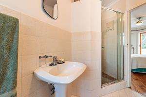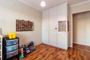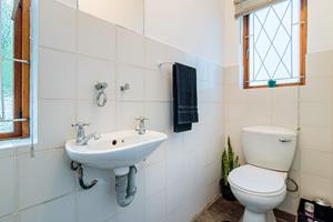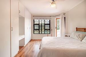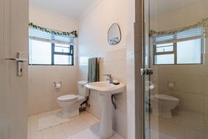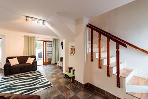 Before heading upstairs, you’ll find a handy guest toilet. On the upper level are three generous bedrooms, all with built-in cupboards. The main bedroom boasts an en-suite bathroom and opens onto a private stoep with beautiful views – the perfect spot to enjoy your morning coffee or watch breathtaking sunsets in peace.