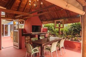 Enjoy the sparkling pool, lush manicured garden, shady seating spots, and a thatched outdoor braai area—perfect for family gatherings and summer parties.