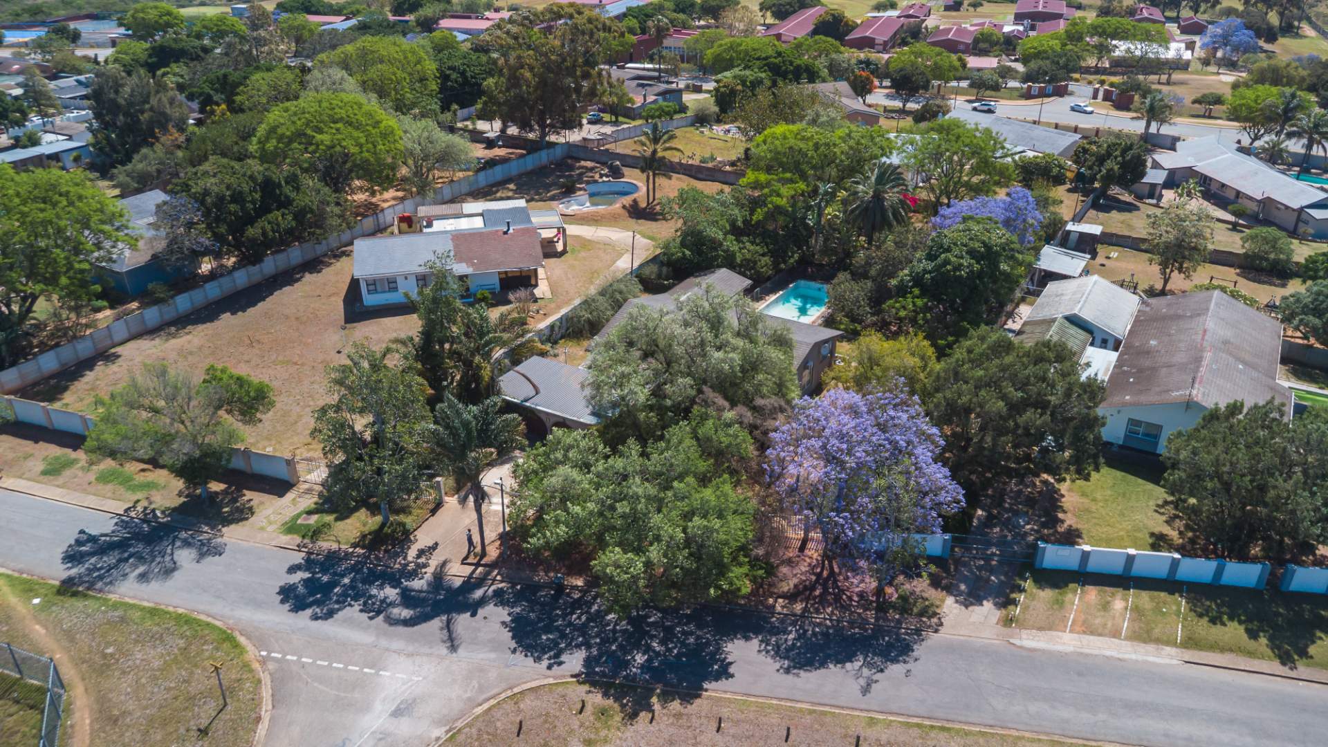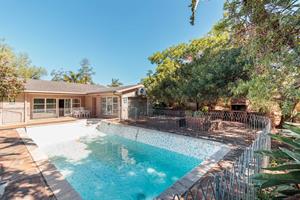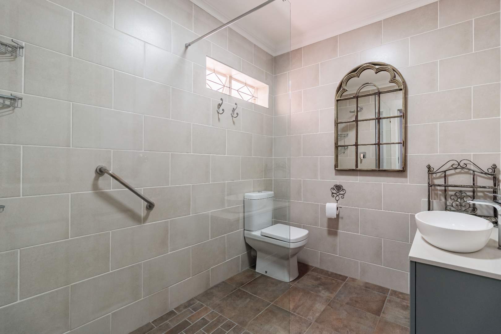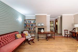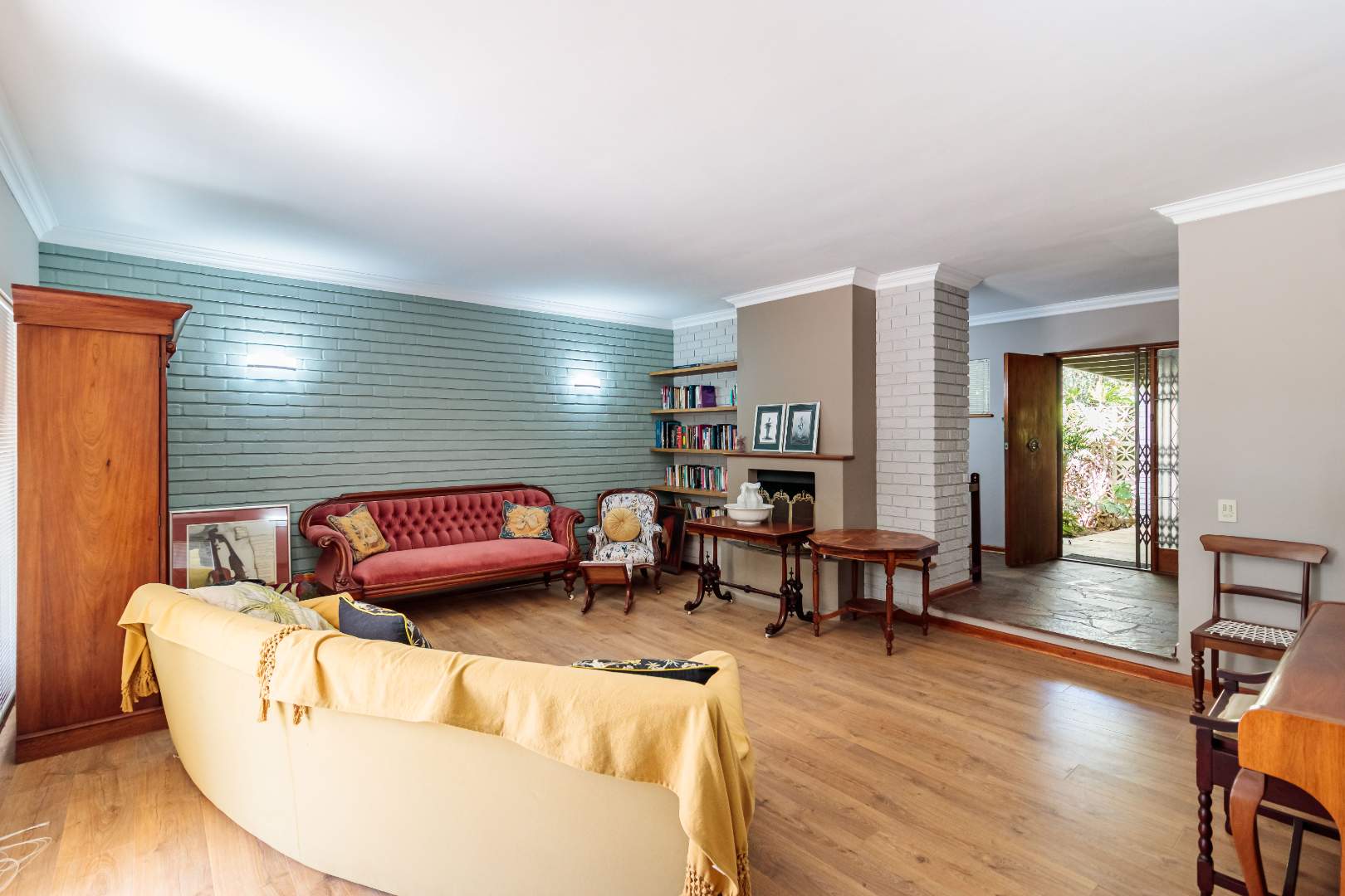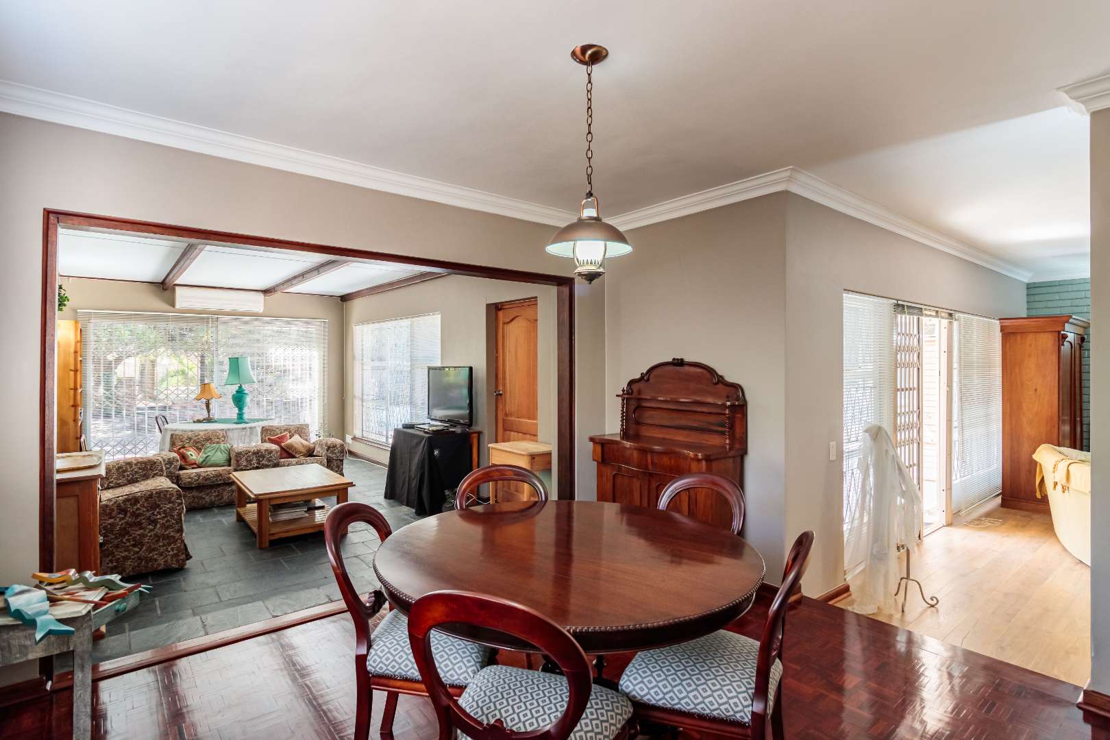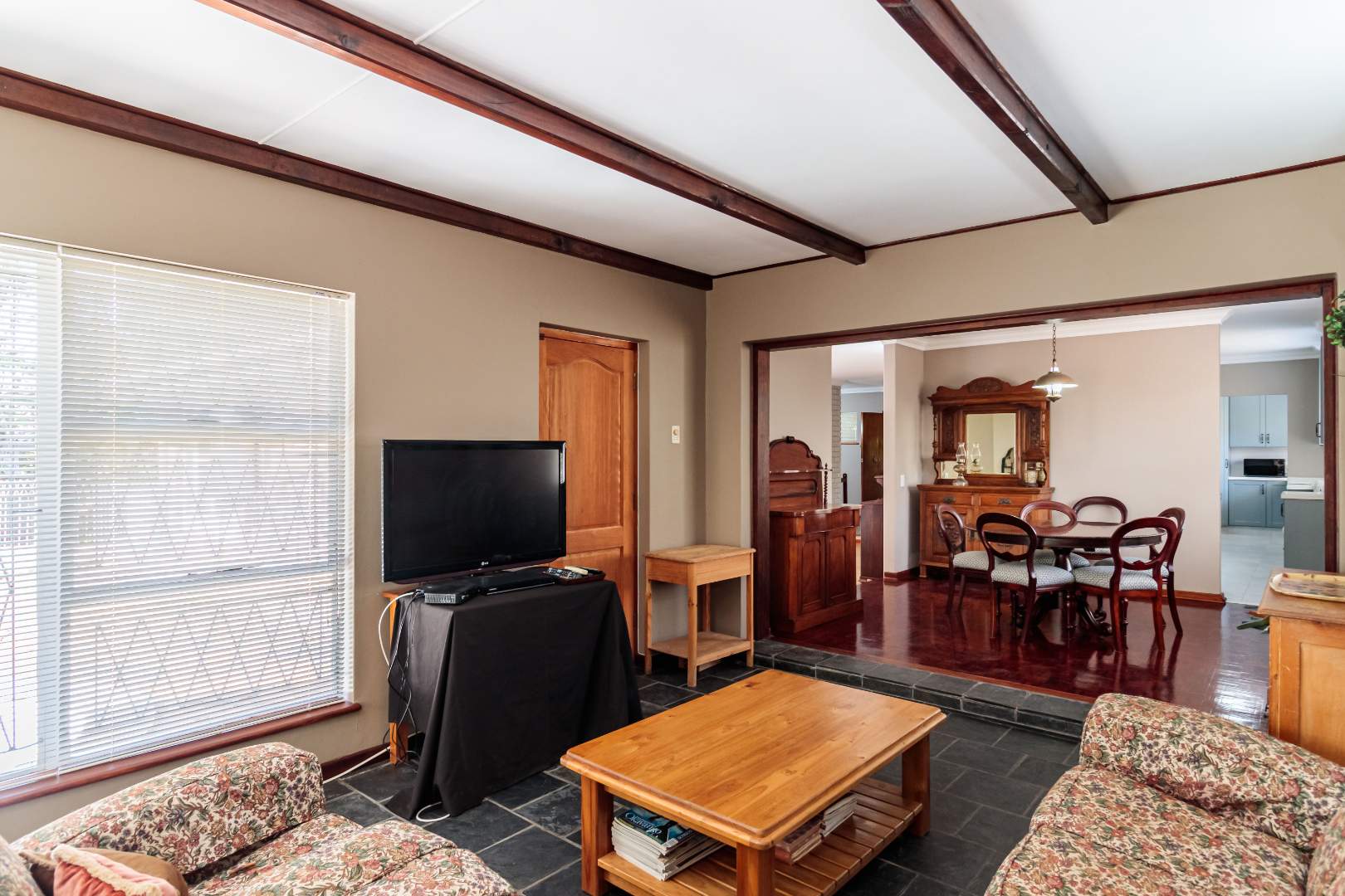 Living spaces are plentiful and inviting, including a dining room, an air-conditioned TV room, and a formal lounge with a fireplace for the cooler winter days. The lounge opens out onto the stoep and swimming pool, creating an effortless indoor-outdoor flow ideal for entertaining.