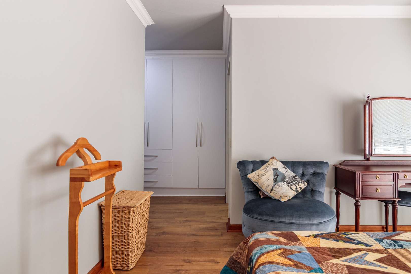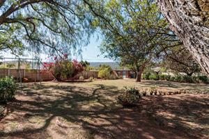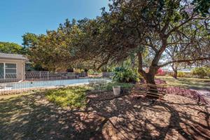 Outside, the property features a double garage plus additional secure parking in front of the garages behind a remote-controlled gate. Adjacent to the house is further parking space behind an enclosed gate—ideal for a caravan, boat, or extra guest vehicles. The garden is beautifully landscaped with mature trees and shrubs, outdoor braai area with a seating area as well as a tool shed for storage.