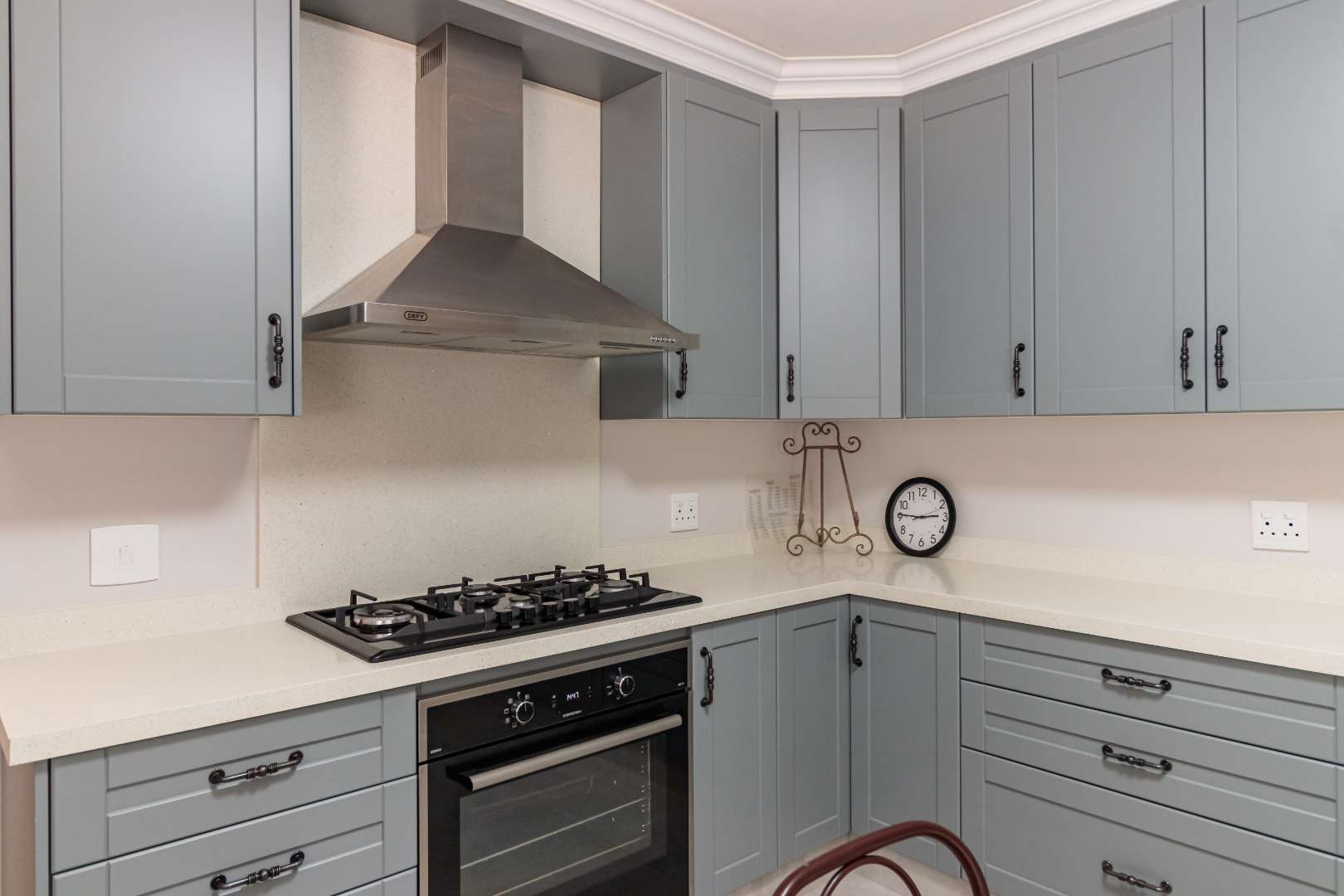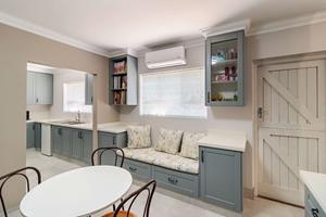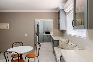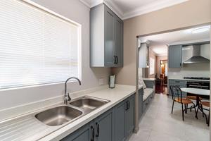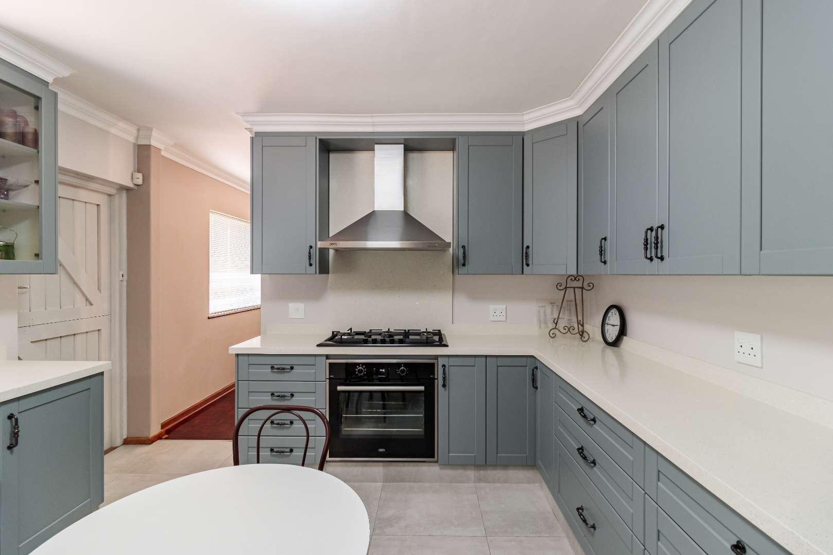 The modern kitchen is a standout, offering a separate laundry and scullery area, soft-close drawers, ample cupboard space, a breakfast nook, and a gas hob with electric oven—perfect for families who love cooking and convenience.