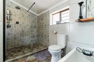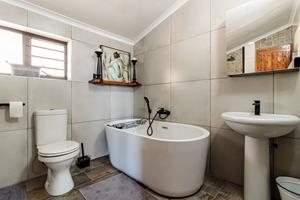 - The main bedroom with en-suite bathroom featuring bath, shower, basin, and toilet