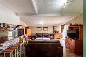 The heart of the home features an inviting open-plan layout that seamlessly connects the lounge, dining area, and a versatile indoor TV/Braai room complete with a built-in bar — ideal for hosting friends and family. The TV/Braai room flows into a well-appointed kitchen with ample built-in cupboards, quartz tops which making both cooking and entertaining a pleasure and on the other side of the TV room it flows with sliding doors, directly to an undercover stoep & braai area which overlooks the garden and sparkling pool.