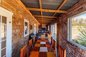 - Long stoep with 6 double tables under a grape pergola – ideal for outdoor dining under the stars