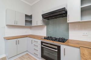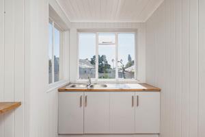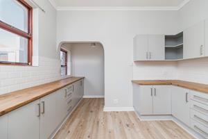 The newly renovated kitchen is both stylish and functional, featuring soft-grey cabinetry, warm wooden countertops, and a free-standing gas oven that will delight any home chef. A separate scullery/laundry provides ample space for appliances, keeping the main kitchen uncluttered and elegant.