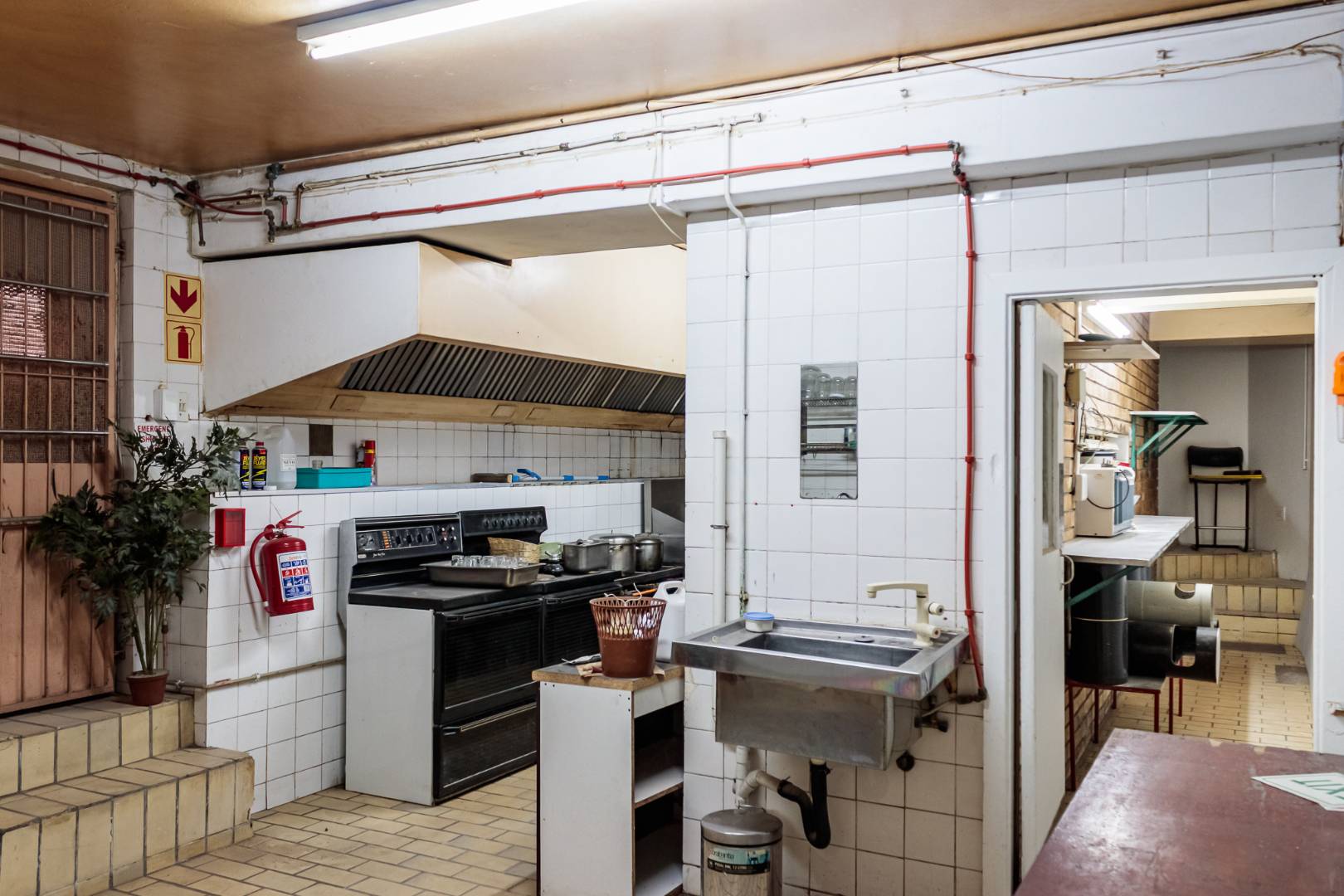- Fully equipped commercial kitchen