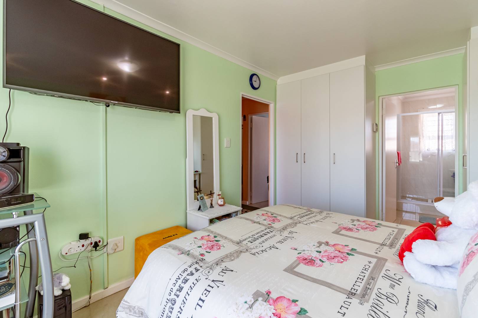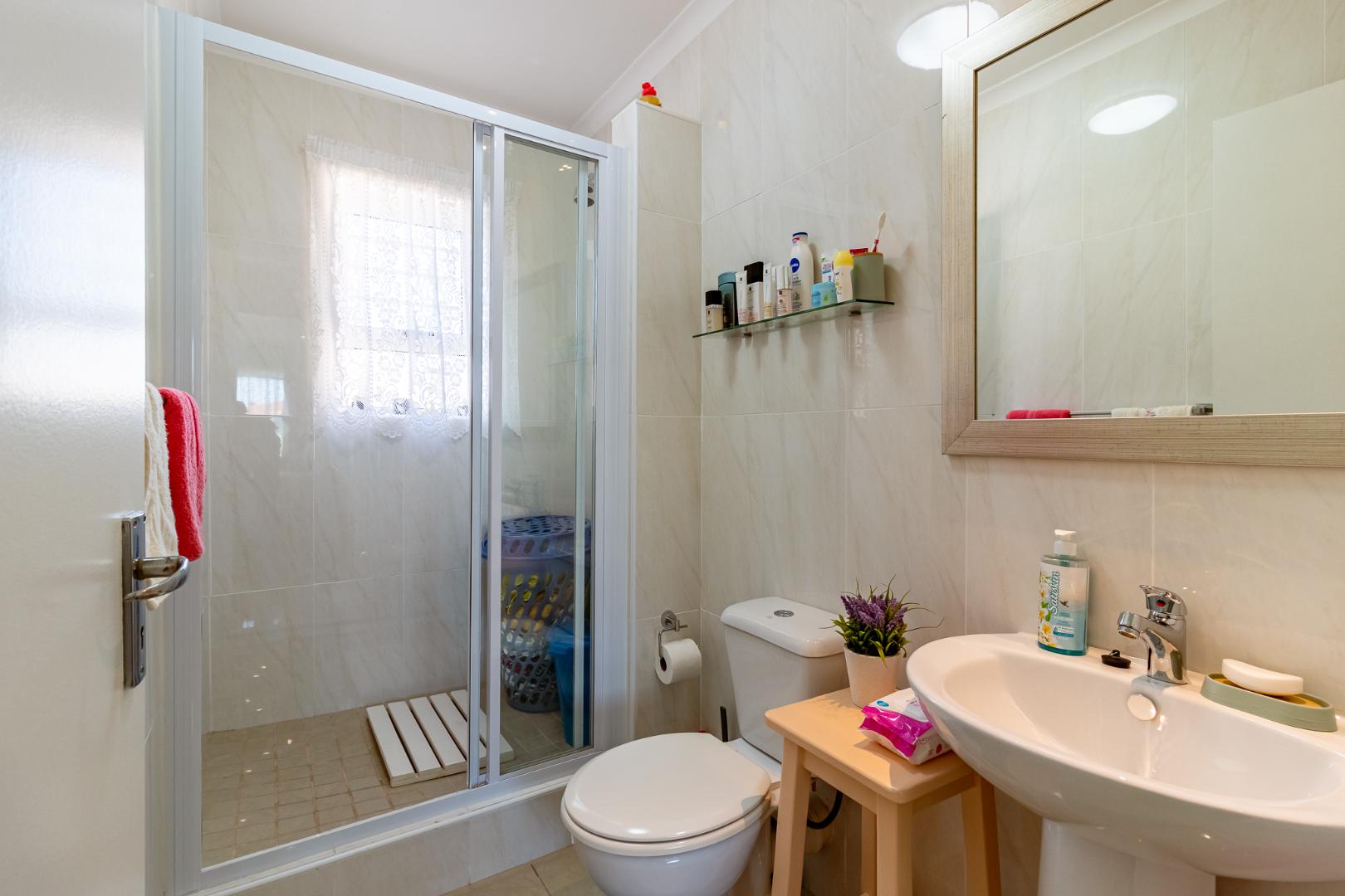 This charming home offers 3 spacious bedrooms and a full family bathroom, perfect for comfortable family living. The main bedroom features built-in cupboards and a private en-suite bathroom with a shower, creating a peaceful retreat at the end of the day.