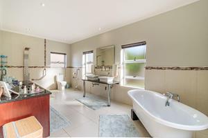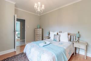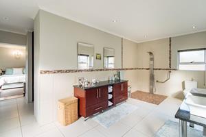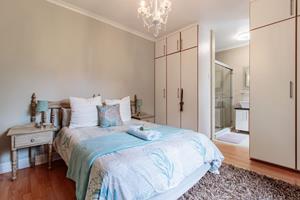 - Main Bedroom (Downstairs): Spacious and elegant with laminated flooring, built-in cupboards, and a walk-in closet. The en-suite bathroom feels like a private spa with a double vanity, large shower, modern bath, and extra cupboard space. Private garden access adds to the charm.