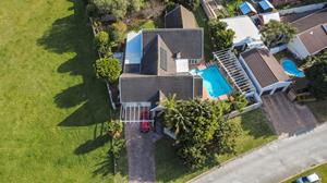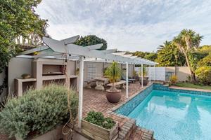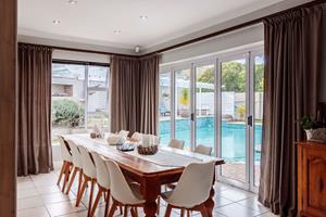 - Covered patio with braai overlooking the pool leading from the dining room through the stacker doors.