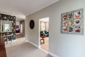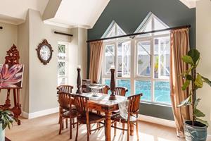 Follow the passage and the home opens into an expansive family TV room and second dining area, seamlessly connected to the fully fitted kitchen. This entertainer’s dream features a dining room with :