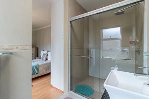 - Second Bedroom: Also downstairs, with laminated floors and a modern en-suite bathroom featuring a double shower, basin, and toilet.