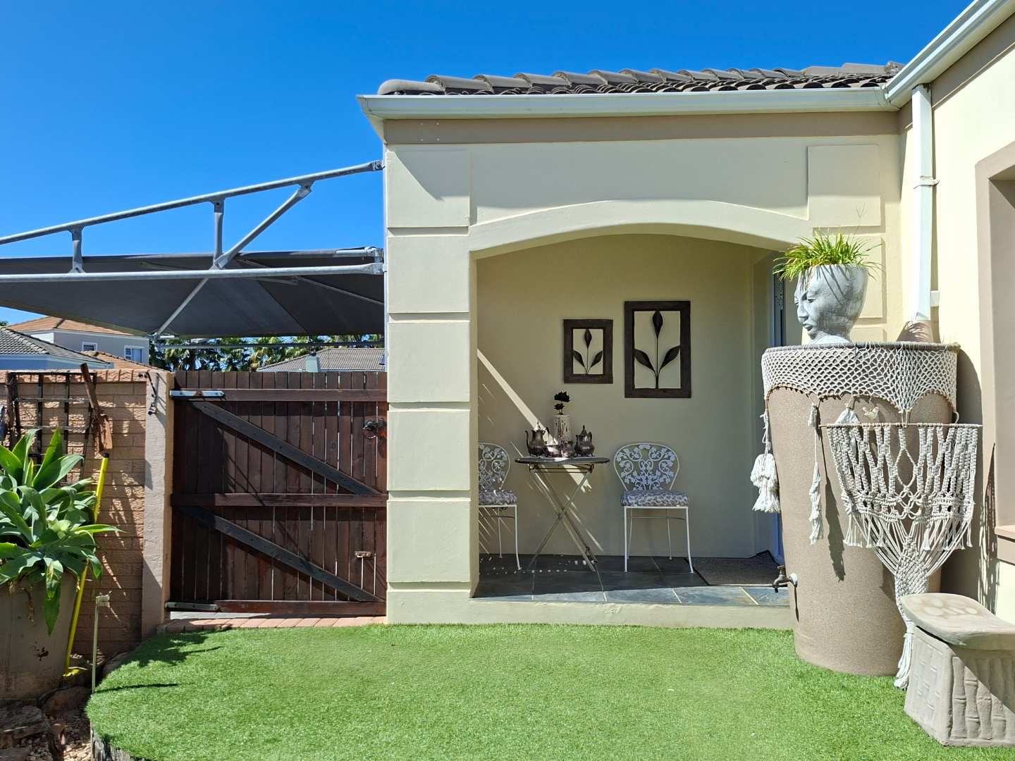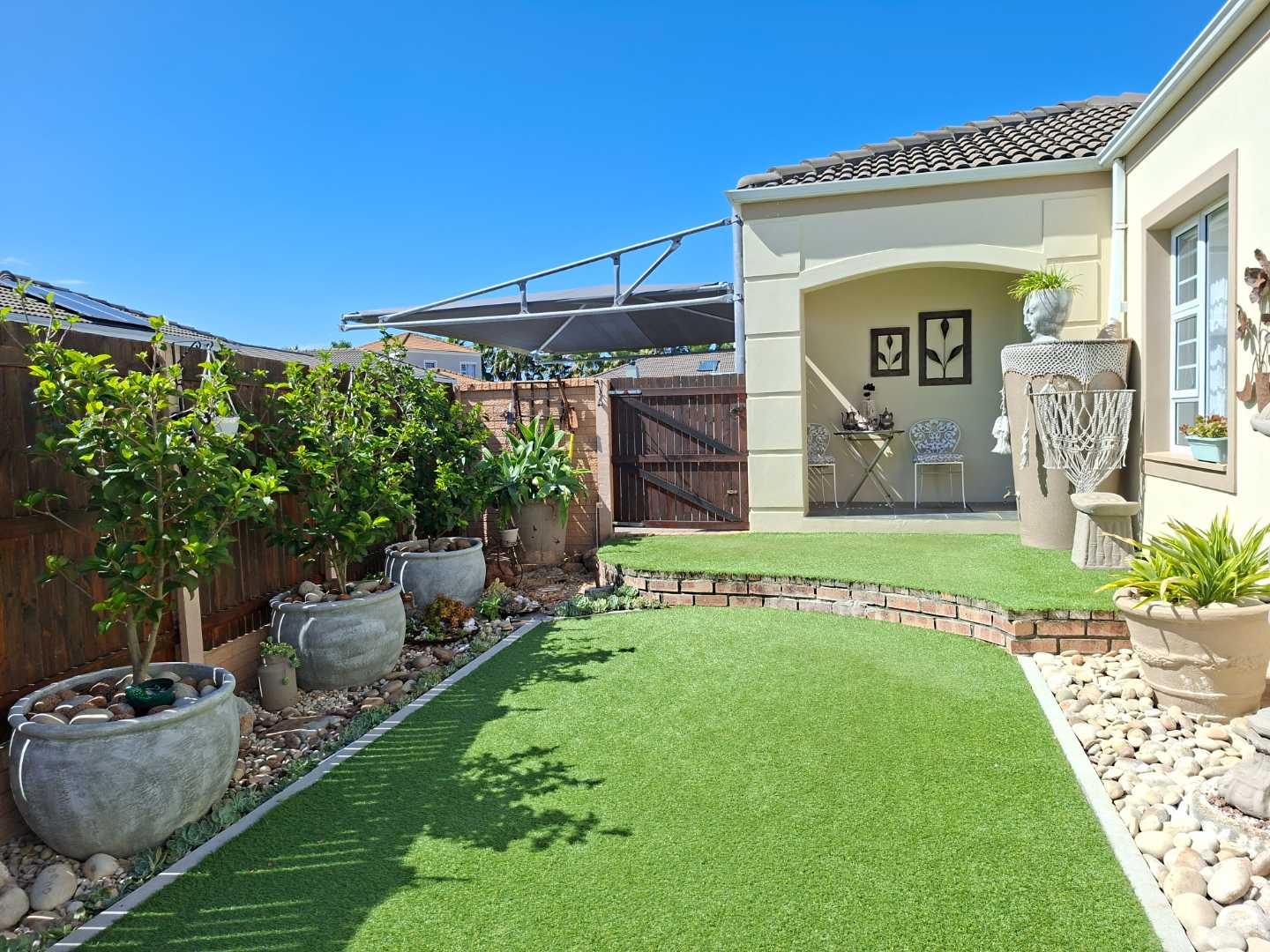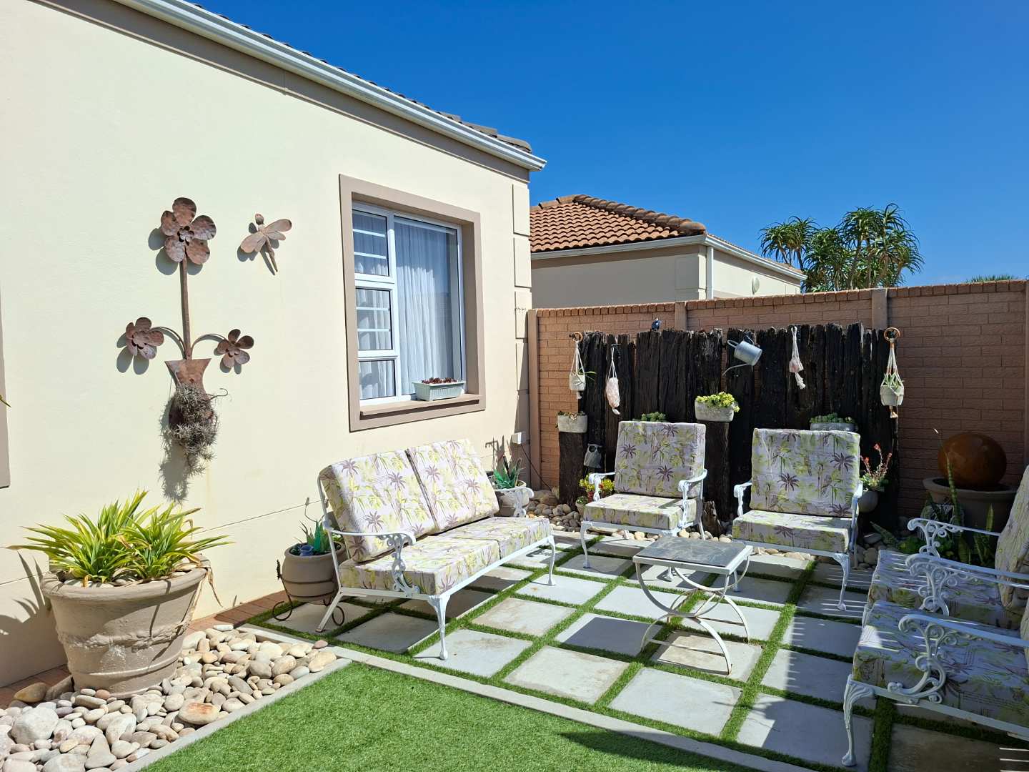 Outside, the front garden serves as your own personal oasis. Enjoy your morning coffee or unwind with late afternoon sundowners on the low-maintenance artificial lawn, providing a peaceful retreat without the hassle of upkeep.
