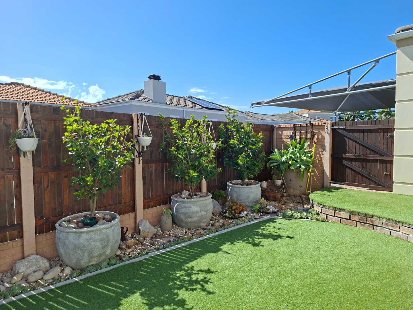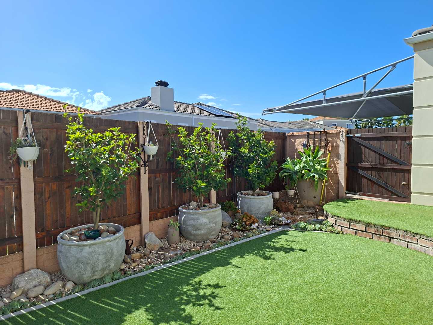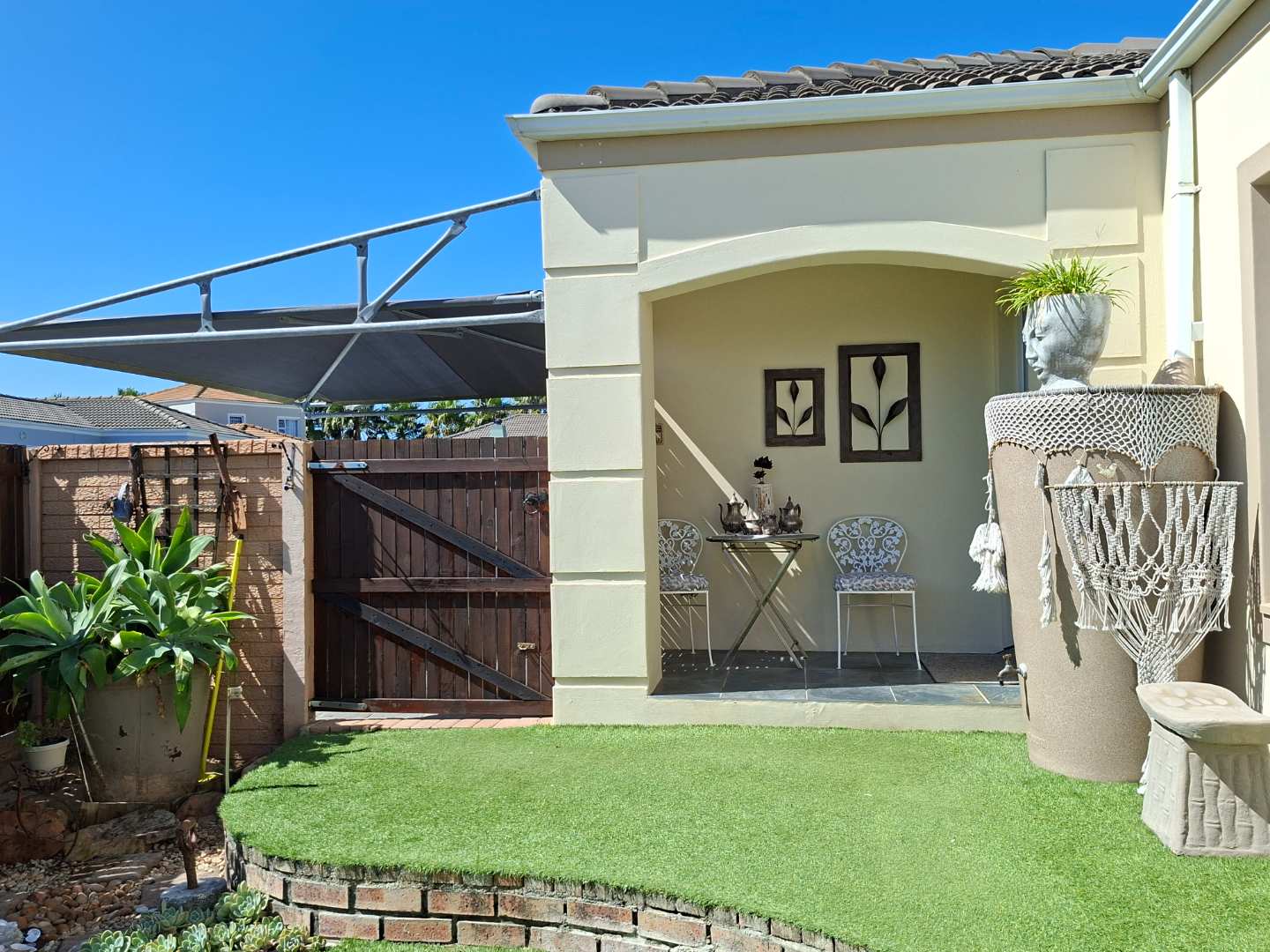 Outside, the front garden serves as your own personal oasis. Enjoy your morning coffee or unwind with late afternoon sundowners on the low-maintenance artificial lawn, providing a peaceful retreat without the hassle of upkeep.