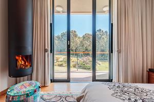 Spacious and serene, featuring bamboo flooring, a fireplace, and sliding doors opening to the deck. Includes a walk-in closet and a luxurious en-suite bathroom with a large bath, generous shower, and a private outdoor shower for that authentic bush-lodge experience.