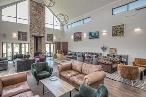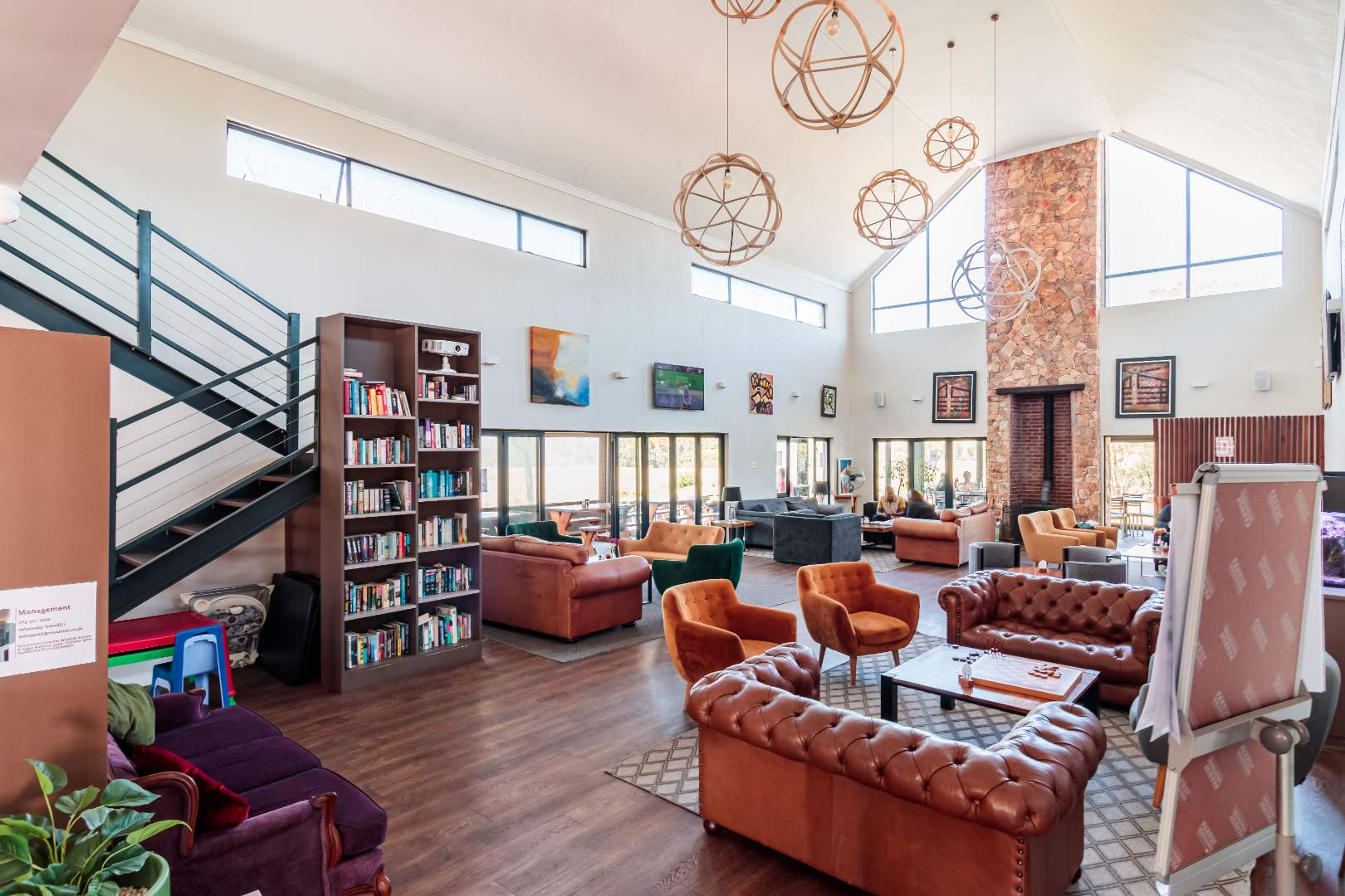A central café and social hub overlooking the natural surroundings
