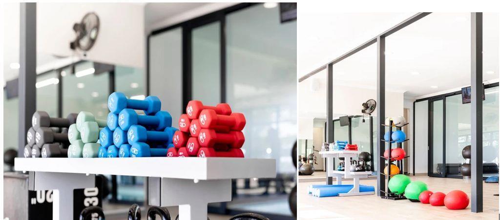 A fully equipped gym, tennis courts and driving range
