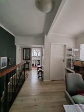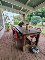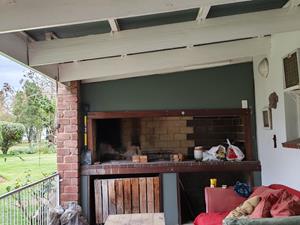 The house features a 100-square-meter footprint with a double-story design that maximizes open-plan living space. High ceilings enhance the sense of space and freedom, creating an inviting atmosphere. No matter the season, the expansive undercover stoep area with a built-in fireplace offers an ideal environment for outdoor living. Whether you're entertaining guests or unwinding with a glass of wine, this space caters to all your needs.