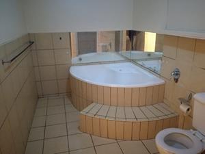 2. Storeroom open plan kitchen bedroom with built in cupboards and bathroom with corner bath