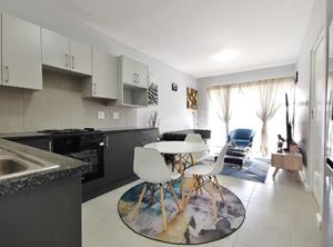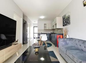 Newly built modern 2 bedroom apartment in secure complex offering bathroom, open plan living area, kitchen with stove and balcony.