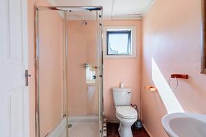 2 full bathrooms with shower, toilet, and hand basin.