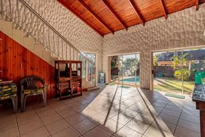 Informal lounge: Downstairs with sliding doors opening to a large enclosed stoep area with built-in cabinets for all your equipment and ornaments.